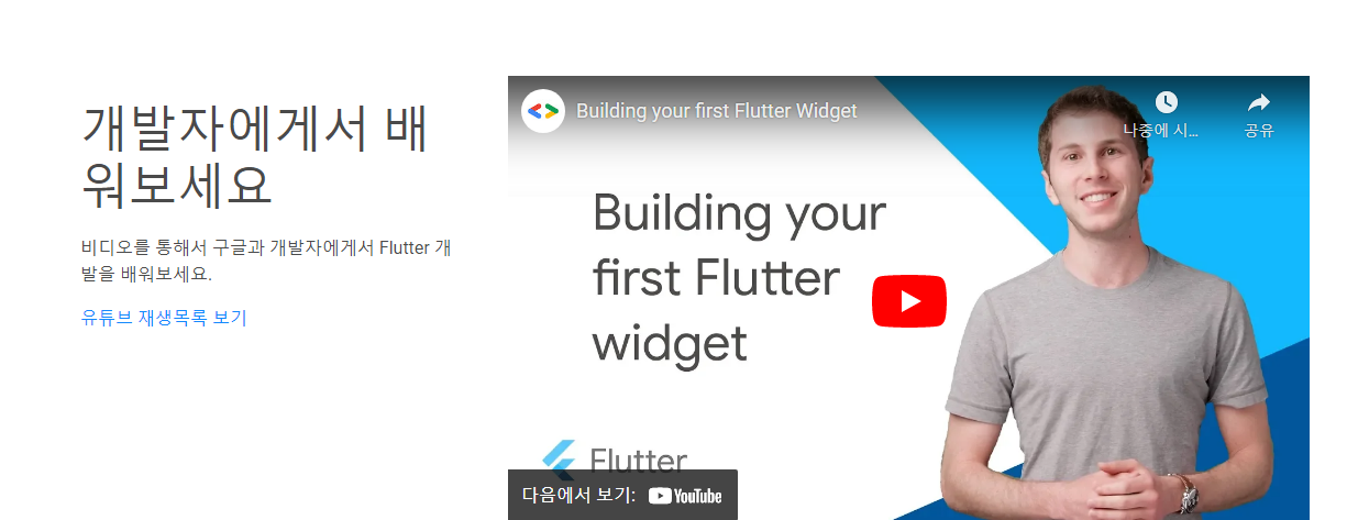 대표 홈페이지에 접속했을 때 "Building your first Flutter widget"으로 보일 수 있을까?