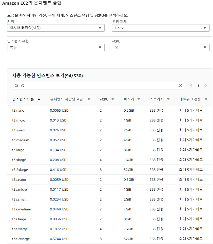 일반적으로 범용 내의 t3를 이용하는데 t3 요금체제는 아래와 같다.