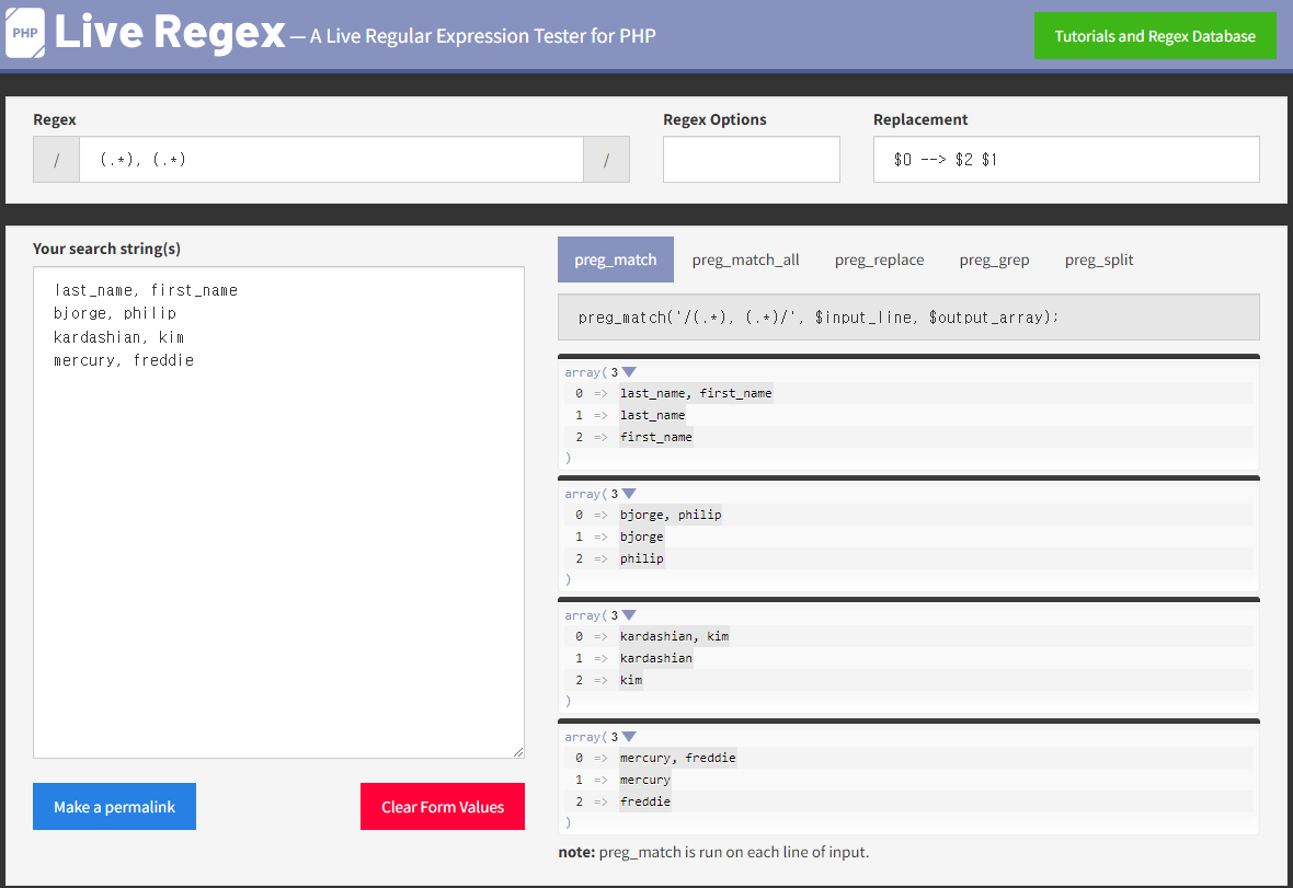 사용은 간단하다, regex를 작성시 php에서 사용하는 함수에 맞추어 작성해준다.
