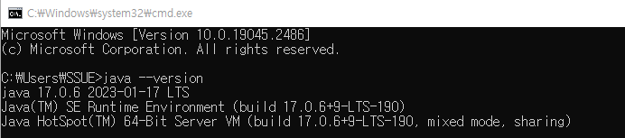 CMD 창을 열어 "java --version" 명령어를 기입하면, 설치한 자바 버전을 확인할 수 있다.