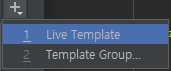 "+" 버튼을 누르게 되면, 2가지 옵션이 나오는데, 그중 "Live Template"을 선택합니다.