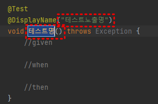 * "$METHOD_NAME$" : 테스트 진행시, 테스트 함수 명에 대해서 표현합니다.