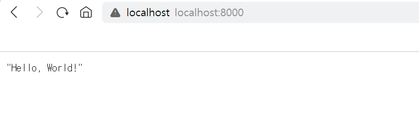 127.0.0.1:8000으로 접속 시 아래와 같이 main.py에 기입한 Hello World를 확인할 수 있습니다.